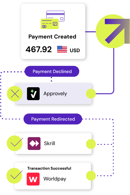 Automatically reroute transactions when a payment fails or a provider experiences disruption.